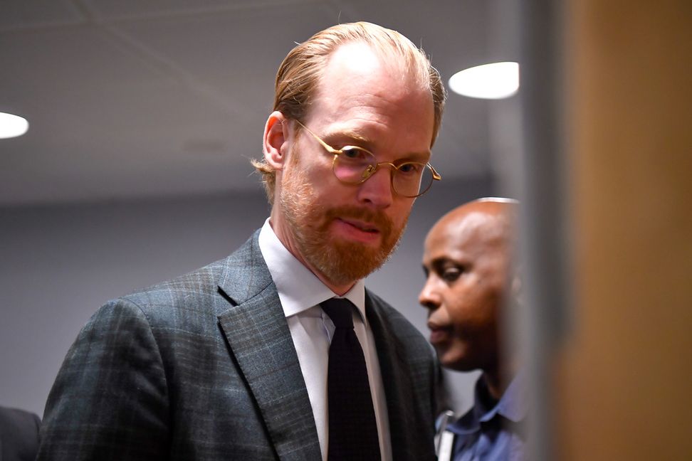 Det är en till synes avslappnad Jonas Falk i jeans och tröja som tar plats bredvid sin advokat i säkerhetssalen i Stockholms tingsrätt. Bakom glaset på åhörarbänken sitter flera anhöriga, däribland hans föräldrar.