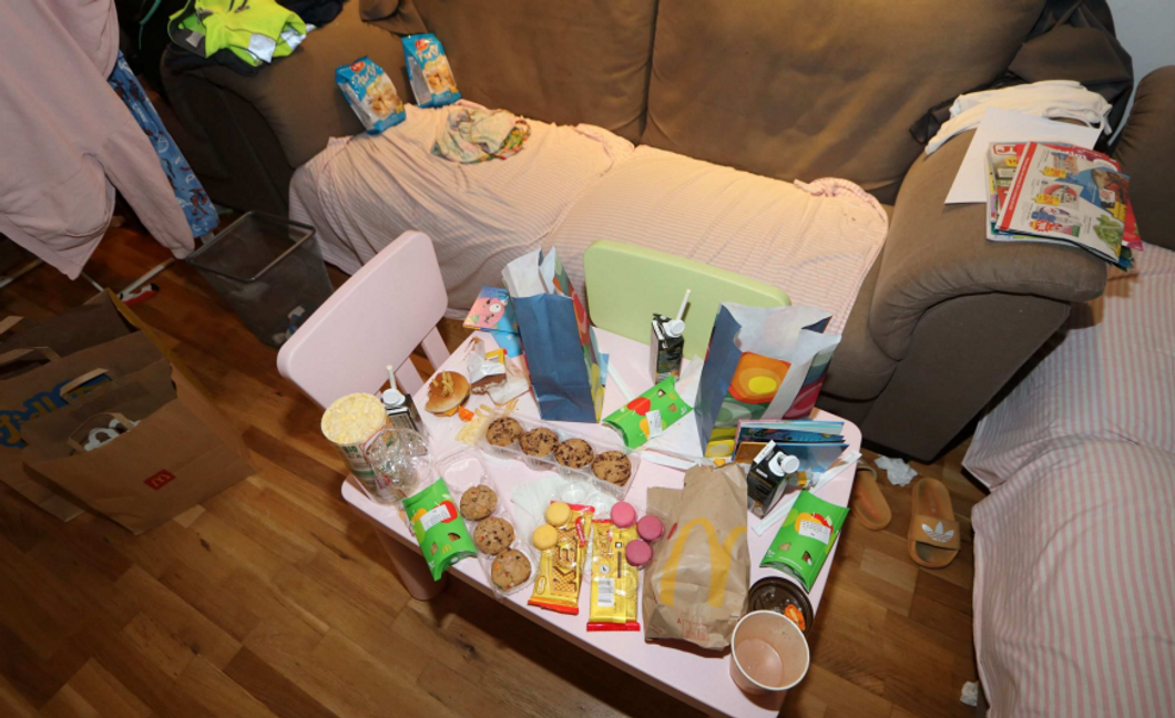 Under dagen för mordet fångas pappan och barnen på övervakningskameror i en livsmedelsbutik där de handlar godis och kakor, och på brottsplatsen påträffar polisen förutom godiset och kakorna två happy meals från McDonalds på ett rosa barnbord, där barnen verkar ha intagit en sista måltid.