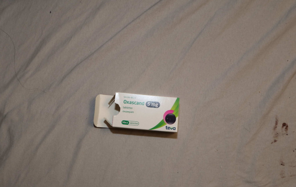 Paket som innehållit ångestdämpande medicin av typen bensodiazepiner från brottsplatsen. Bild: FUP.