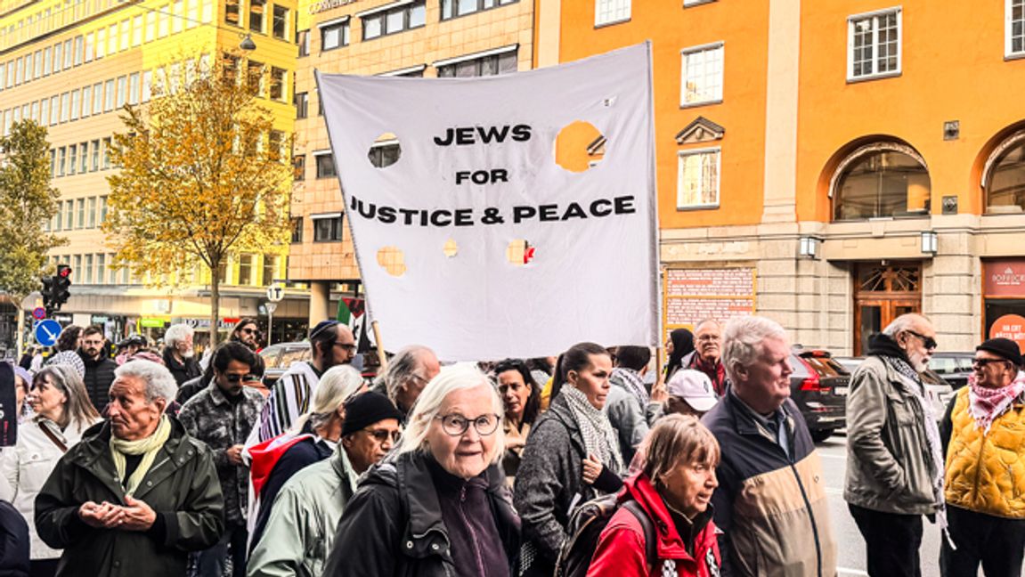 Längst bak i tåget gick en grupp personer under parollen: ”Judar för rättvisa och fred”.
