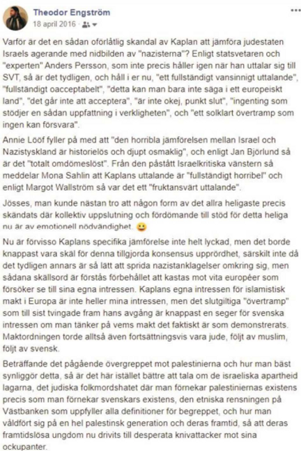 Facebook-inlägg av Theodor Engström. Bild: FUP