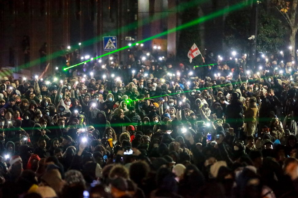 De pågående protesterna utlöstes av det alltmer Rysslandstillvända regeringspartiet Georgisk dröms besked om att frysa alla samtal om EU-medlemskap till 2028, trots att landet fick kandidatstatus i slutet av fjolåret.