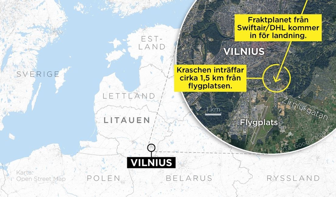 Fraktflygplanet höll på att landa när en explosion plötsligt inträffade. Planet störtade vid ett bostadshus nära flygplatsen i Litauens huvudstad Vilnius. Ombord fanns fyra personer, minst en omkom i kraschen.