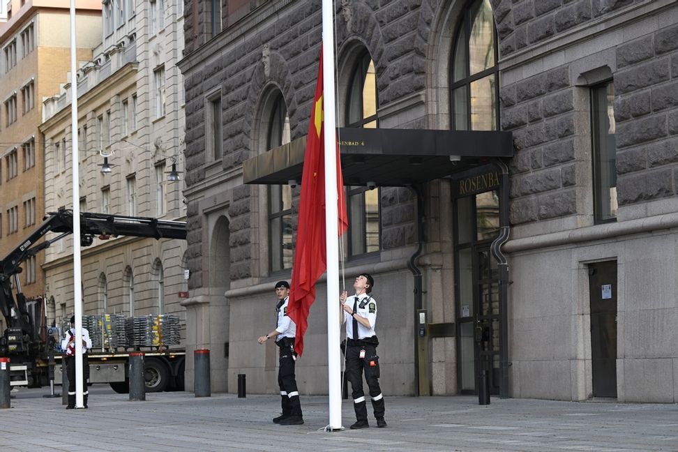 Det är ännu inte bekräftat var i Stockholm det tvådagarslånga mötet mellan USA:s finansminister Scott Bessent och Kinas vice premiärminister He Lifeng kommer att ske, men utanför Rosenbad i centrala Stockholm har flera internationella medier samlats medan polis sätter upp stängsel kring byggnaden. Flaggorna vajar och under morgonen anlände en lastbil med stängsel till Rosenbad. Delar av Fredsgatan har stängts av.