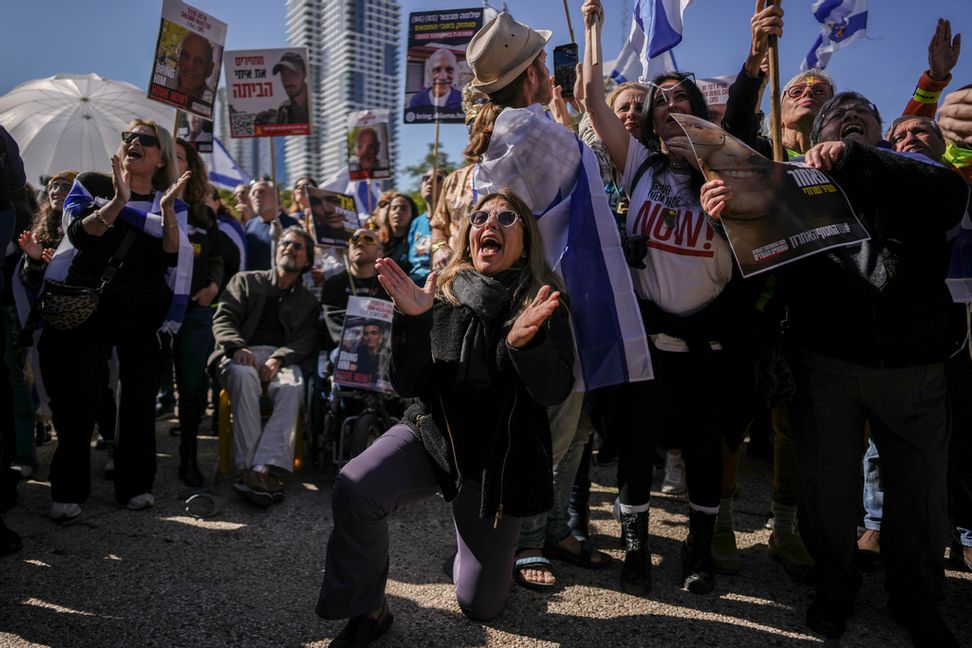I Tel Aviv, där anhöriga och allmänhet följer frigivningen på storbildsskärm, utbryter stort jubel.