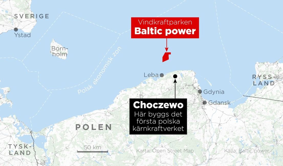 I närheten ska även Polens första kärnkraftverk byggas i Choczewo. Avtal skrevs 2023 med USA-företagen Westinghouse och Bechtel. Planen är att den första reaktorn ska kunna tas i bruk 2036, även om landets regering flaggat för att det kan dröja till 2040.