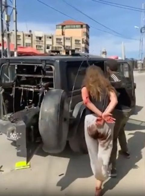 Kontrasten mellan gisslan och Thunberg är enorm. Kidnappningen av Naama Levy är en av de mest kända bilderna från pogromen. En film visar hur Naama dras ur en bil. Hon är smutsig, blodig och har byxor som är blodfläckade kring underlivet. Hälsenan är skadad eller avskuren så att hon inte ska kunna springa. Innan dess har hon bevittnat en massaker, och som alla israeler vet hon vad som brukar hända de som kidnappas. Hon överlevde och har berättat hur hon i dagar inte fick mat – ibland bara lite vatten.