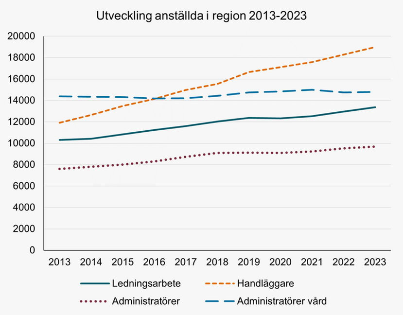 När Vårdfokus granskade utvecklingen hos personalstyrkan i regionerna 2019-2023 fann de att personalen ökade med 5,9 procent. Administrationen stod för 23 procent av den ökningen.