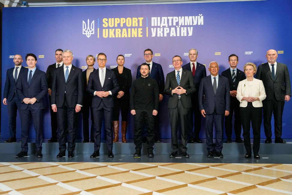 På måndagen den 24 februari, på årsdagen av Rysslands fullskaliga invasion, samlades EU-toppar, Nordens och Baltikums regeringschefer och flera andra av Ukrainas allierade länder i Kiev. Ulf Kristersson tillkännagav ett luftvärnsstödpaket på 1,2 miljarder svenska kronor. Totalt lovade partnerna Ukraina pengar och vapen till ett värde av mer än 15,5 miljarder dollar den 24 februari.