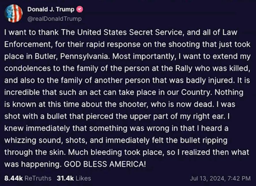 Det verkar ha varit väldigt nära att USA:s tidigare president och nu presidentkandidat Donald Trump mördades i går. Kulan från en skytt träffade hans högra öra, enligt vad Trump själv bekräftat på sociala medier. Det var alltså en felmarginal på någon centimeter från att han hade träffats så pass allvarligt att han dödats.