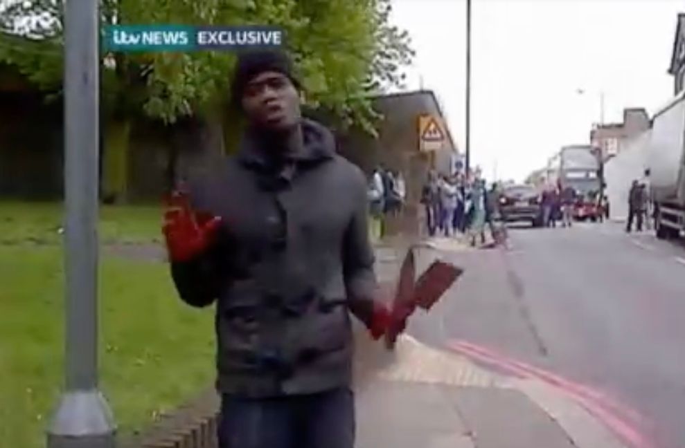 Mördaren Michael Adebolajo direkt efter att han mördat Lee Rigby 2013
