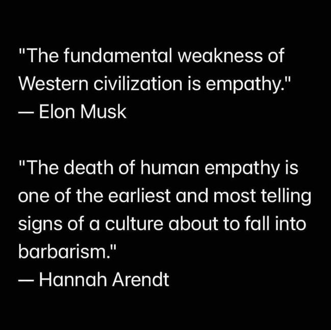 “The death of human empathy is one of the earliest and most telling signs of a culture about to fall into barbarism.”