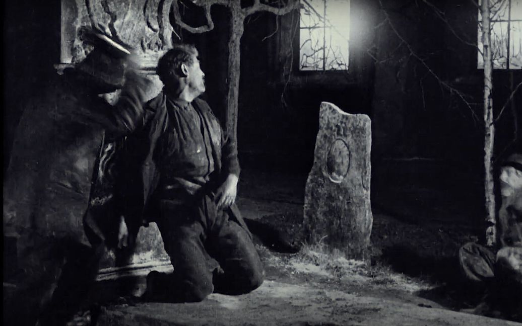 ”Det svenska mordet”, där en berusad man slår en literbutelj i huvudet på en annan berusad man, här i filmen ”Körkarlen” 1921