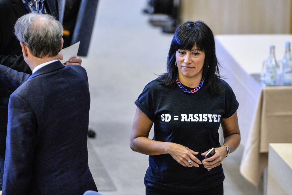 I september 2014 bar Vänsterpartiets Rossana Dinamarca en t-shirt med texten SD=rasister när nya talmän skulle väljas. Detta i protest mot att Björn Söder (SD) var nominerad. Hon anmäldes för hets mot folkgrupp för tilltaget. Så hur gick det? Björn Söder valdes till vice talman – och JK lade ner anmälan mot Dinamarca.
