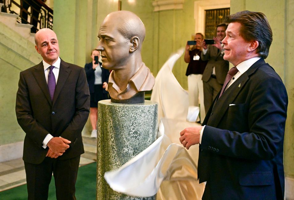 Fredrik Reinfeldt har blivit byst i Sveriges riksdag i Stockholm. 59-åringen var statsminister över två mandatperioder (2006–2014) och ledde alliansregeringen som Moderaternas partiledare.