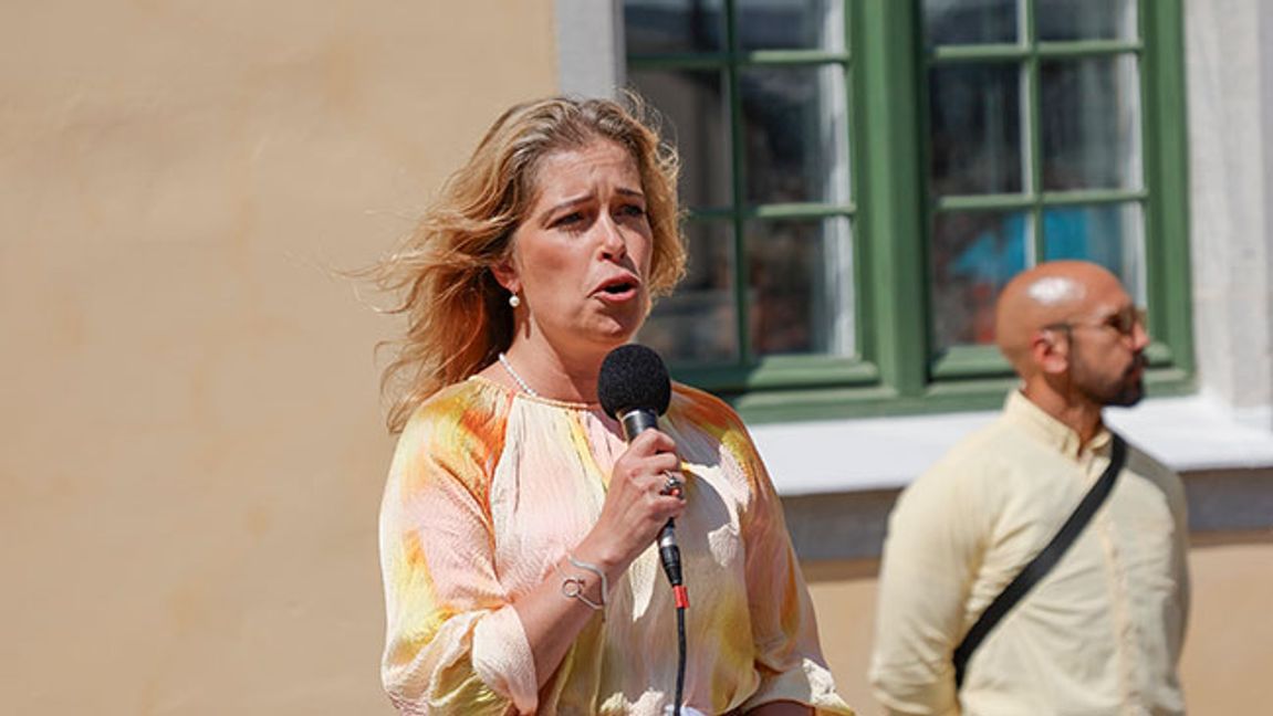 Annika Strandhäll talar på Almedalen 2023. Bild: Adam Ihse / TT