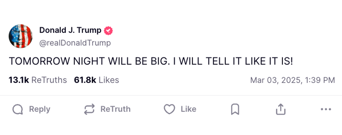 Skattesänkningar, fortsatt drastiska Doge-nedskärningar och sannolikt storordiga reflektioner över valsegern i november. På onsdag ska president Donald Trump hålla sitt första kongresstal sedan han flyttade in i Vita huset.