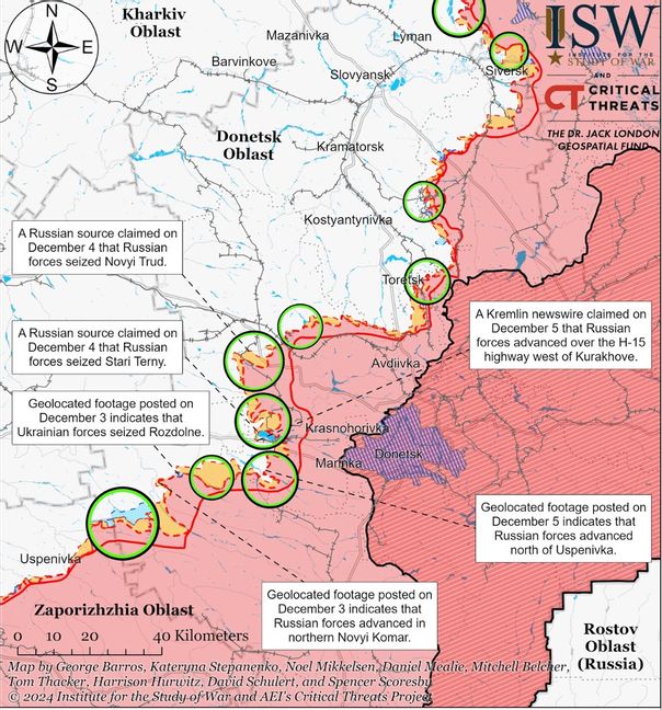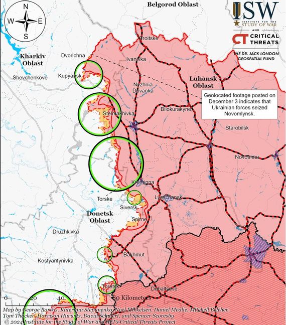 Den 3 december befriade Ukrainas försvarsförband byn Novomlynskyi nära Kupjansk i Charkivregionen. Ukrainska soldater drev bort ryska ockupanter från en landstigningsplats på Oskil-flodens västra strand.