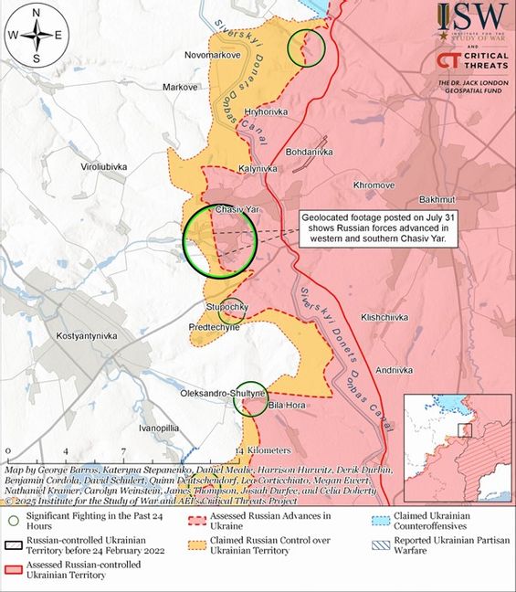 I Donetsk-regionen förblir stridshandlingarna mest intensiva. Huvudhändelserna utspelas kring städerna Thasiv Jar, Pokrovsk och Kostjantynivka. Ryska styrkor försöker omringa Thasiv Jar och påstår sig ha fullständig kontroll över staden.