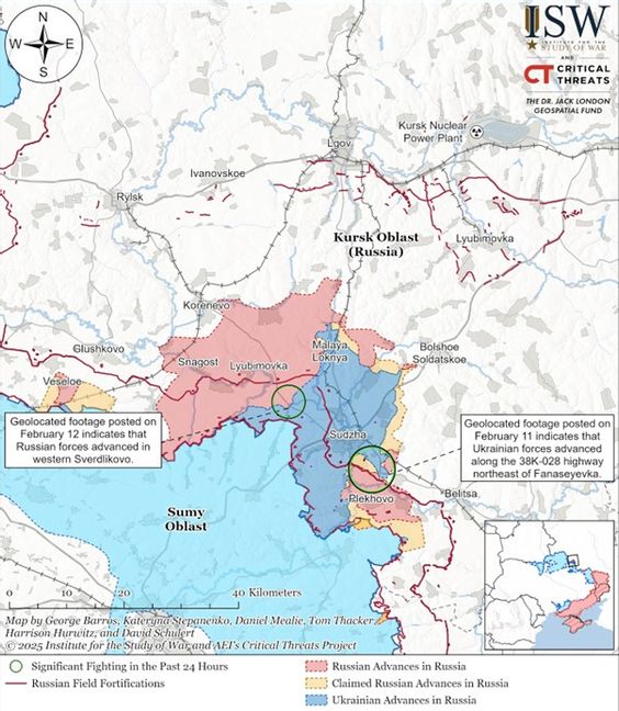 I Kursk-regionen noteras också Ukrainas framryckning sydöst om Sudzja. Förra veckan ökade framryckningen med ytterligare några kilometer.