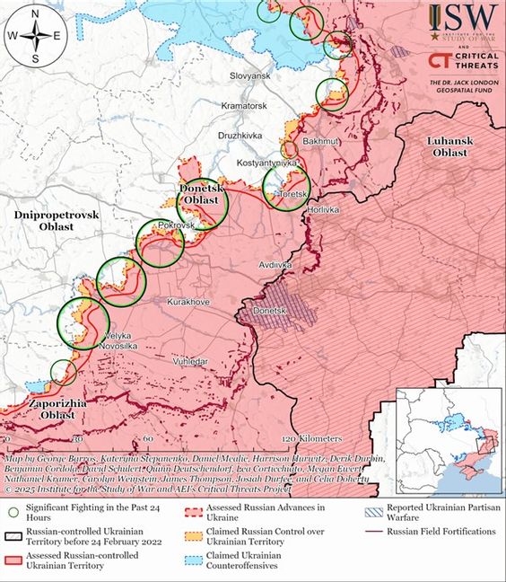 Under den senaste veckan har frontläget i Ukraina förblivit extremt tufft. Ryska styrkor intensifierade attackerna på flera frontsektioner och försökte tränga djupare in på ukrainskt territorium. De hetaste punkterna var Pokrovsk-, Sumy- och Zaporizjzja-fronterna. Trots den komplicerade situationen lyckades ukrainska försvarsstyrkor stabilisera läget och uppnå flera lokala framgångar.