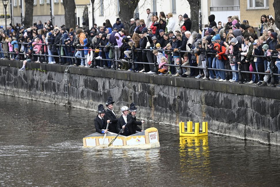 Redan på förmiddagen på valborgsmässoafton har tusentals människor samlats längs med Fyrisån i Uppsala för att se den traditionsenliga forsränningen. Varken snålblåst eller tidvis lätt duggregn verkar bromsa firandet. I anslutande Stadsträdgården har studentsällskap redan inlett festandet.